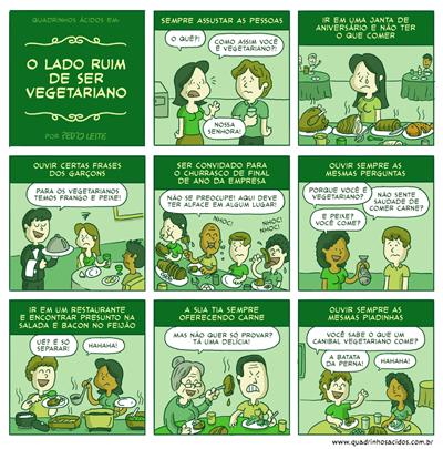 “As críticas dos ‘Quadrinhos Ácidos’ vêm mais de coisas que podem estar dentro de cada pessoa. Por exemplo, se tem uma tirinha sobre “como meu amigo só publica foto boba no Facebook”… Eu sinto que o leitor que compartilha essa piada tem dentro dele uma crítica que quer fazer a outro amigo e vai querer compartilhar para o cara ver. Então, acho que ‘Quadrinhos Ácidos’ é uma crítica que é bacana, não é nada pesado”, diz.