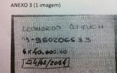 No documento divulgado por Nunes em sua coluna no site da revista há a inscrição: "Leonardo Attuch 11-950206533 6×40.000.00 24/02/2014'". O material consta de um relatório escrito pela delegada Paula Ortega Cibulsk .