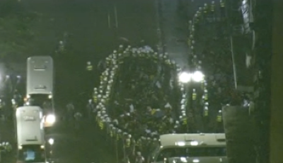 Diversos militares, armados com tacos de beisebol, estavam dentro do edifício e proibiam a entrada.