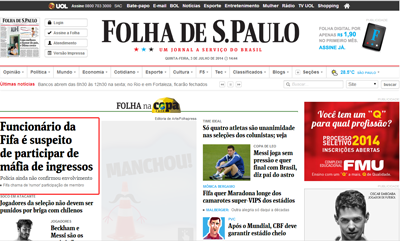 Na manchete publicada na rede social, o jornal diz: "Polícia apura elo entre ex-atleta e máfia de ingressos. Dunga e Júnior Baiano devem ser ouvidos; pai de Neymar também é investigado". No entanto, logo depois da reclamação de Neymar na rede social, o texto foi substituído no portal por outra matéria com o mesmo tema: "Funcionário da Fifa é suspeito de participar de máfia de ingressos. Polícia ainda não confirmou envolvimento".