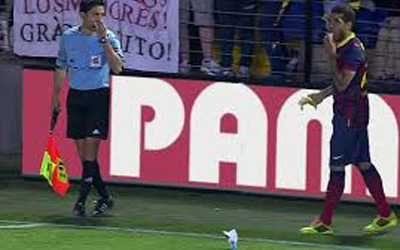 Durante a partida entre Villareal e Barcelona no dia 27 de abril, válida pelo campeonato espanhol, o lateral do time catalão e da Seleção Brasileira, Daniel Alves, se preparava para bater um escanteio quando um torcedor da equipe da casa atirou uma banana ao campo do estádio El Madrigal.