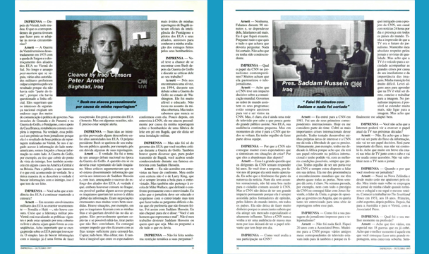A seguir, leia alguns trechos da entrevista exclusiva concedida para a edição 121 da Revista IMPRENSA. O jornalista Carlos Eduardo Lins da Silva conversou 50 minutos por telefone com Arnett, que estava na África do Sul, sobre carreira, suas convicções e aspectos sobre o jornalismo contemporâneo.